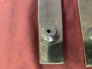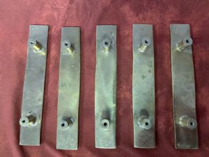 This is a set of 5 Rare Ackerman Door Handles and Door Pulls, they could be used on drawers too. These handles or pulls are in excellent condition, I did not clean them, I will let you clean them as much as you want. These were cast in Italy and are very rare. All 5 have made Italy stamped on them. 1 is stamped ERA Inc. and the patent stamp. See pictures for condition and stamps. The pictures can not capture the true beauty of the pieces. 7" long, 1 1/4" wide, 2 - 3/4" post on back of handle where it is attached. If you have any questions please email me. Texas res 8.25% sales tax. Jerome Ackerman (1920- ) and his lovely wife Evelyn Ackerman are American designers who as a team made many contributions to California mid-century modern. The Ackermans maintained the high quality of their work and had limited production runs of each design. His hand-cast solid brass pulls and knobs were produced in Italy with a variety of inlays and finishes and were well-designed. The Ackermans sold their products through their company ERA Industries. Era Inc. $2,500.00