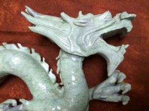 Large Antique Hand Carved Chinese Jade or Stone Dragon Statue 14" LongThis is a large antique hand carved Chinese Jade or Stone dragon 14" long, 8" tall and 2 1/4" thick.I have looked closely at the piece and I believe it is jade and other people think it is. I have ran some test on it for jade but I can not guarantee it to be jade. It is a beautiful hand carved piece and very heavy 5 lb 2.9 oz. I believe it is in mint condition. See the pictures for the beauty, quality and condition. Texas res 8.25 sales tax. If you have any questions please email me. Thanks for looking. $450.00