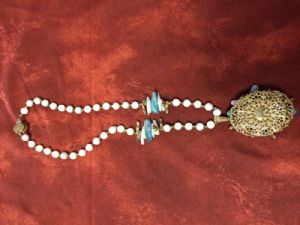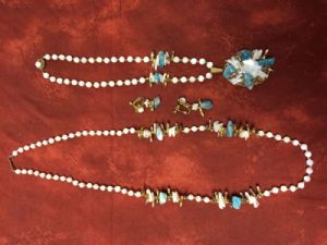 Vintage Miriam Haskell 2 Necklace Earclips Turquoise MOP Mint – Horton Antiques closed