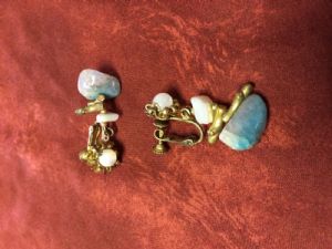 Vintage Miriam Haskell 2 Necklace Earclips Turquoise MOP MintMiriam Haskell