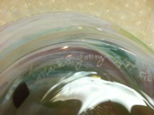 Hand Blown Glass Bowl by Mark S YoungThis is a beautiful hand blown glass bowl signed by Mark S. Young and numbers 2/97 CG. The bowl is about 11" across and 3" tall. There are no chips or cracks, bowl is in excellent condition. The bowl has beautiful colors in it. Texas residents 8.25 sales tax. If you have any questions please email me. Thanks for looking.