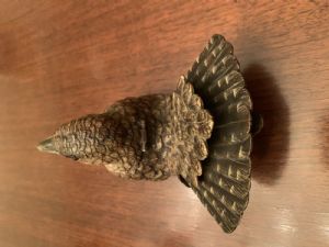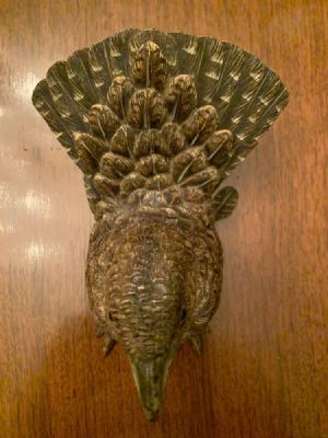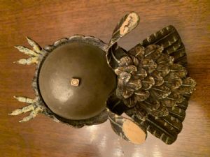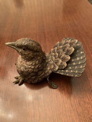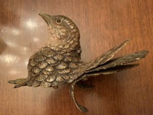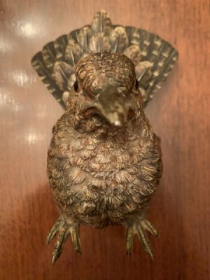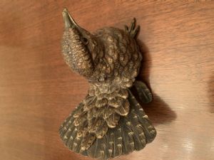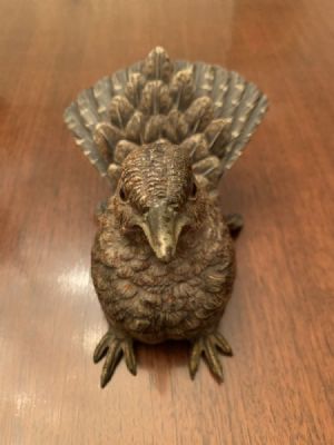 Rare Antique Austrian Bronze Bird Desk Inkwell This is a Rare Antique Austrian Bronze Bird Desk Inkwell. The cold painted Austrian Bronze is in excellent condition and the color has not faded. It must have been a cabinet piece. There are only a few flea bites of paint missing. The over all condition is one of the best I have ever seen and the color of the paint. Look at the eyes and detail in the bird. It has the original porcelain ink holder. There are no breaks or damage to the piece. Look at the pictures to see the condition and beauty of the piece. Bird across tail is 5", 6" long, width of bird 3", 5" tall. This is not a small piece. If you have any questions please email me. Thanks for looking. $3,500.00