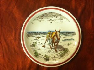 Vernon Kilns Pottery Bits of the Old West THIRST 8-1/2"This is a Vernon Kilns Pottery series Bits of the Old West, THIRST. This plate is in excellent condition, no chips, cracks, stains, etc. 8 1/2". Texas residents 8.25 sales tax. If you have any questions please email me. Thanks for looking.