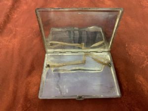 Antique Hand Engraved Islamic Persian Silver Cigarette Case 215 gAntique Persian Silver Cigarette Case The case is in excellent condition. size: 5 1/8" wide x 3 5/8" across" x 3/8" thick. 215 g Made from a very thick heavy gauge marked solid silver Hand Chased and embossed with beautiful design. Perfect push button to open, operates great. You can see by the pictures the condition and beauty of the piece. I have not cleaned the piece. If you have any questions please email me. Thanks for looking. $375.00